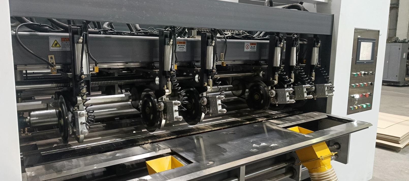 Компьютеризированная высокоскоростная продольно-резательная машина NCBD предназначена для удаления боковых кромок, продольного разрезания и рилевания (биговки) полотна гофрокартона. Вся настройка на тираж выполняется в автоматическом режиме с сенсорного дисплея. Память заказов сохраняет все параметры тиража. В нужный момент оператор просто выбирает номер заказа и машина автоматически выставляет ножевые и рилевочные муфты. Револьверная система рилевочных муфт дает возможность выбрать один из трех типов рилевки (биговки).