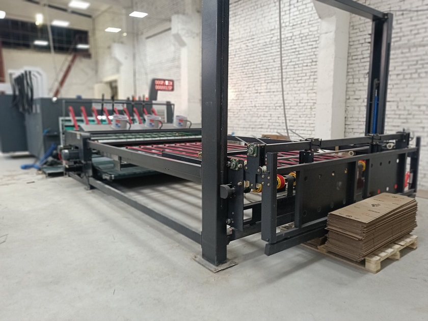 Линия для производства гофрокоробов модели VIKING-S с возможностью нанесения многоцветной флексопечати (до 4-х цветов), поперечной рилевки, просечки и сложной высечки.