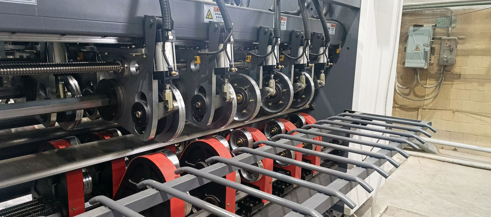Компьютеризированная высокоскоростная продольно-резательная машина NCBD предназначена для удаления боковых кромок, продольного разрезания и рилевания (биговки) полотна гофрокартона. Вся настройка на тираж выполняется в автоматическом режиме с сенсорного дисплея. Память заказов сохраняет все параметры тиража. В нужный момент оператор просто выбирает номер заказа и машина автоматически выставляет ножевые и рилевочные муфты. Револьверная система рилевочных муфт дает возможность выбрать один из трех типов рилевки (биговки).
