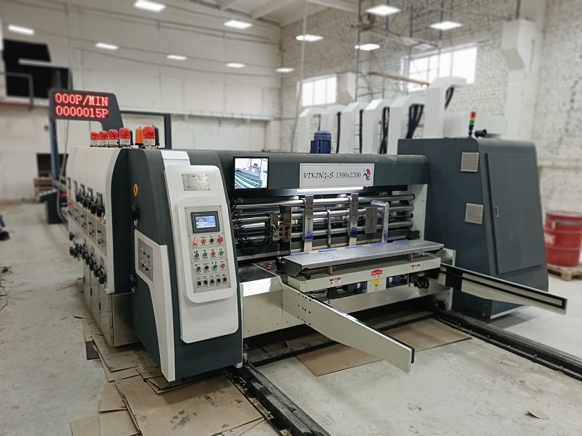 Линия для производства гофрокоробов модели VIKING-S с возможностью нанесения многоцветной флексопечати (до 4-х цветов), поперечной рилевки, просечки и сложной высечки.